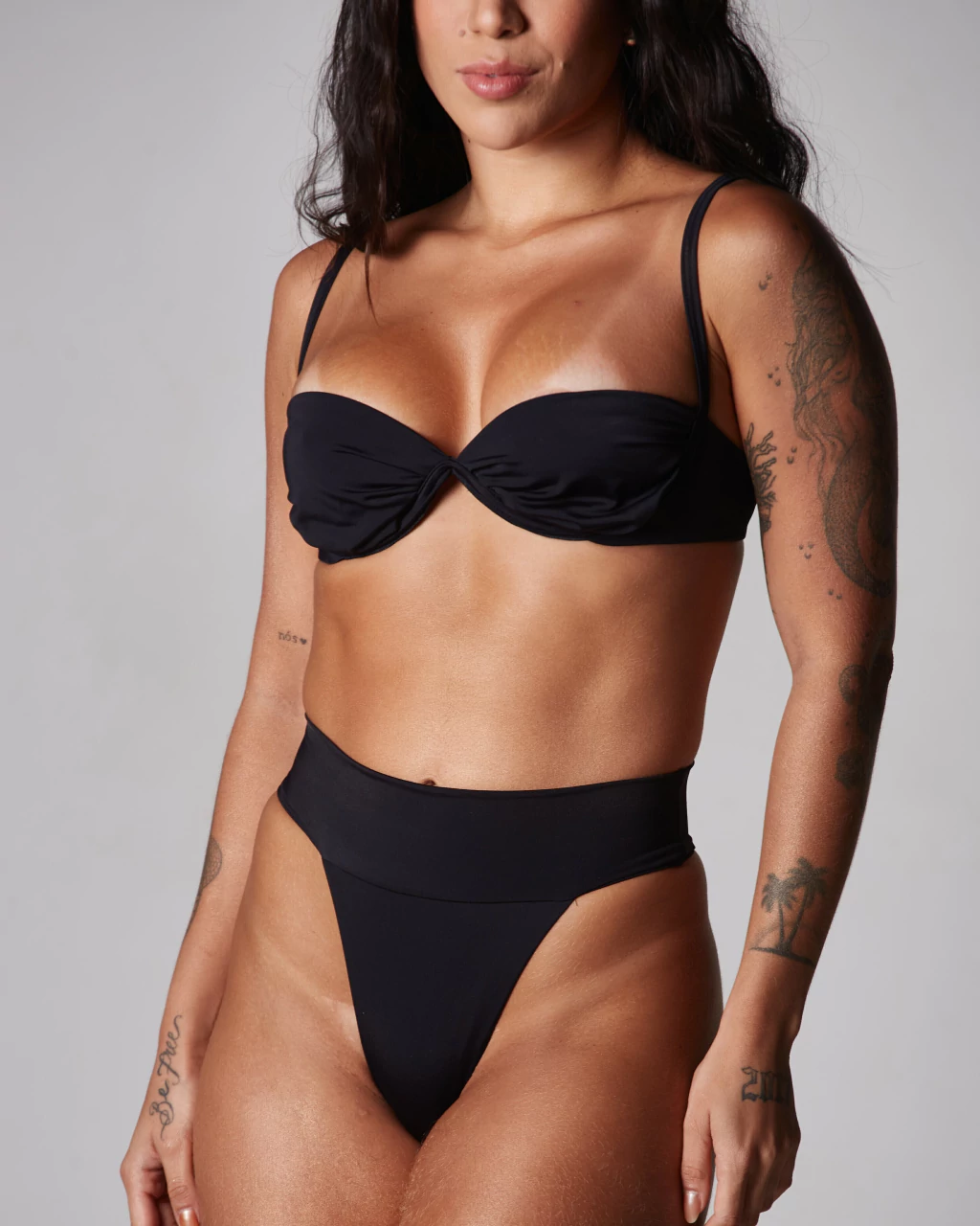 Modelo para em quem deseja glamour em biquini. O tecido é 100% poliamida. Top com sustentação e em aro sereia, com a frontal de busto em tecido drapeado. Alças com regulagem em metal inoxidado. Costas sem regulagem e com fecho de encaixe em aço inoxidado. Calcinha hot pants bem alta e bem cavada na frente e costas. Calcinha sem amarração. Conjunto confeccionado em tecido de alta qualidade tendo em sua composição a poliamida e elastano, sendo finalizado com pingente personalizado tendo a logo da nossa marca, acessórios em aço inoxidável. Composição: 85% de poliamida, 15% de elastano. Importância do aço inoxidado nas peças de moda praia: Alta durabilidade. É um tipo de aço que contêm pelo menos 10,5% de cromo, tendo uma maior resistência a corrosão. Notas: